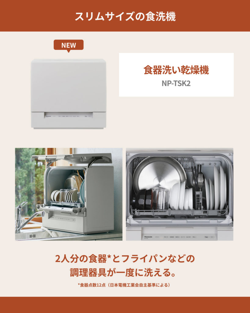 スリムとはいえ、二人分の食器とフライパンなどの調理器具がまとめて洗えます😄(だいたい食器12点くらいでしょうか)