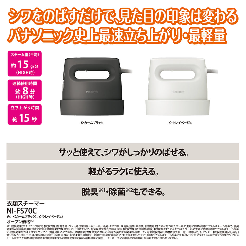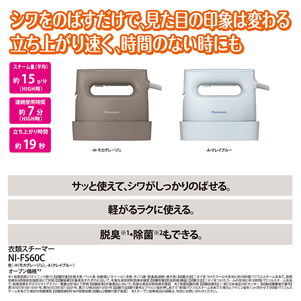 サッとかけてシワのない状態でお出かけ出来ます。3月に新発売予定のスチーマーが2種類あり、
